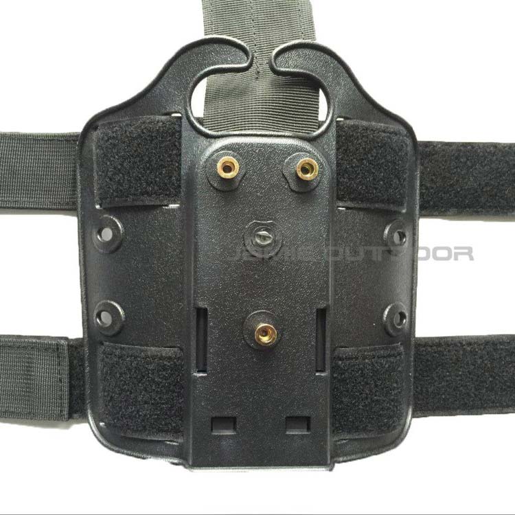 The twin Glock back holster actually has velcro glued onto the back, and I made some velcrop loops to attach to the molle on the back of the tactical belt.